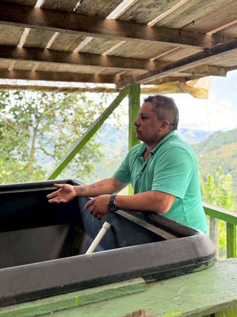 22haのうち、コーヒー栽培は7haのみで残りは牧草地と湧水保護区に割り当てられています。この農園を経営するCOE入賞経験もあるディディモ・グズマンさんは、早くから父親の農園を手伝い、コーヒー生産に向き合ってきました。